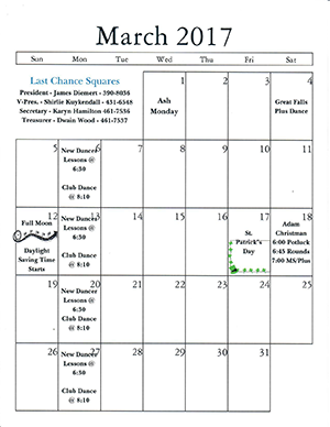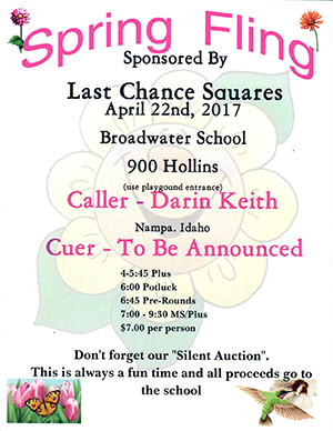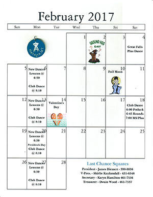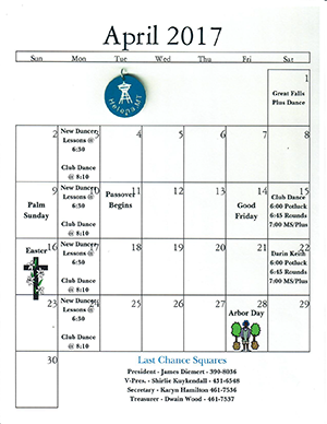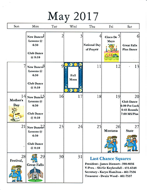 Last Chance Squares is out of Helena MT, our States Capitol City! They are primarily a mainstream dance club with a few plus tips thrown in for good measures. Rounds are cued between tips. They primarily dance on the first and third Saturdays from 6:30 pm to 9:30pm. Glen Tusler is their Caller and Cuer and they dance at the Broadwater Elementary School 900 Hollins Avenue Helena, MT 89601. View more about Last Chance Square at their website Lastchance.org
